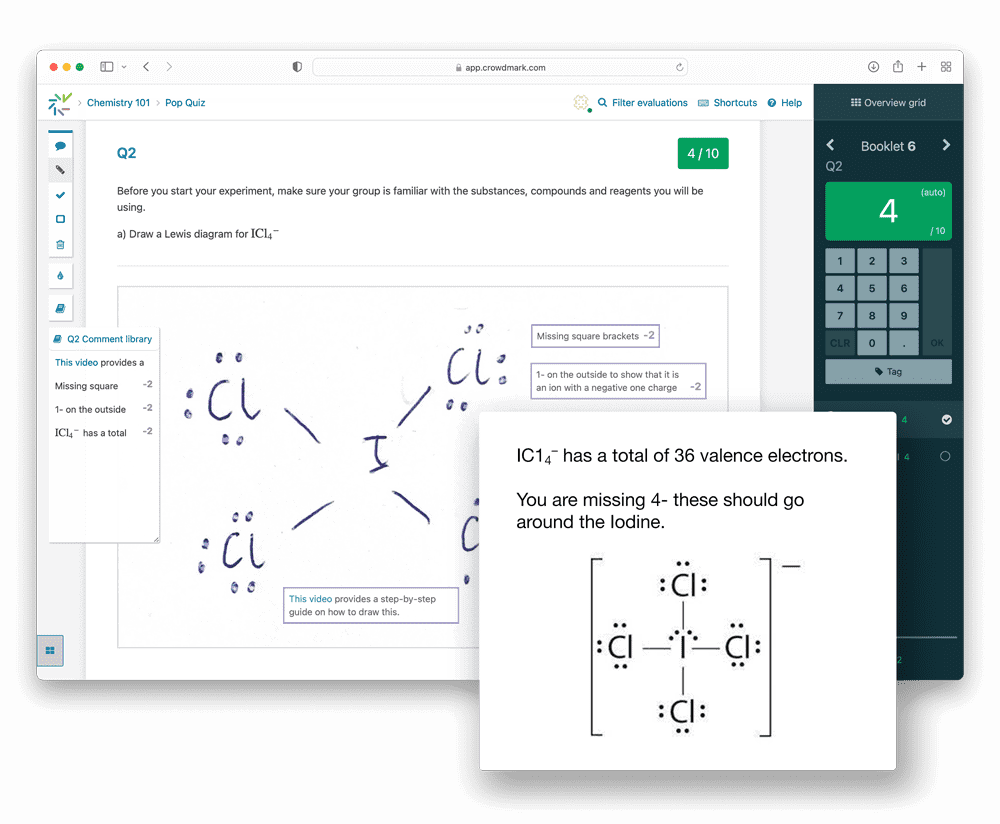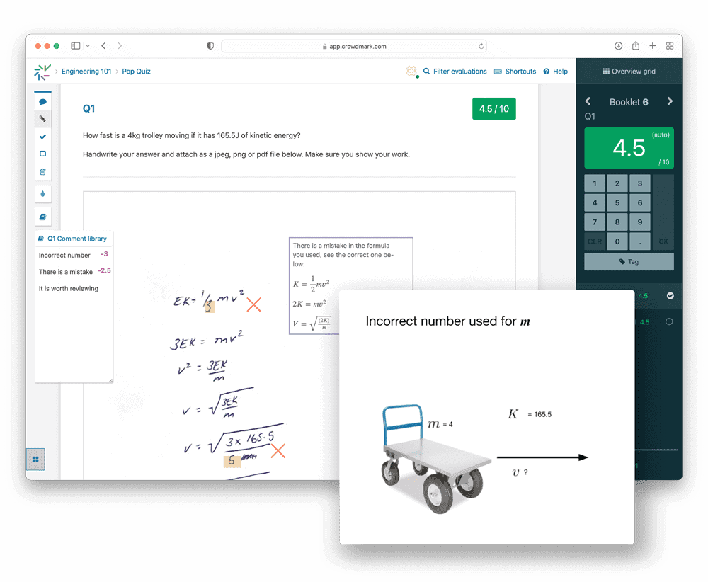 Leave rich feedback with flexible grading tools and share frequently-used comments with your team. Grades can be returned to students online, instantly.