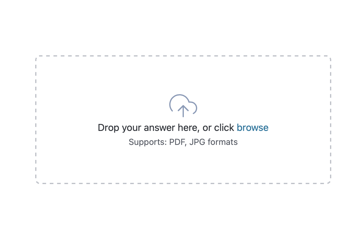 Students can attach files to text entry questions to support answers. Files can include coding assignments, presentations, advanced excel calculations and much more.