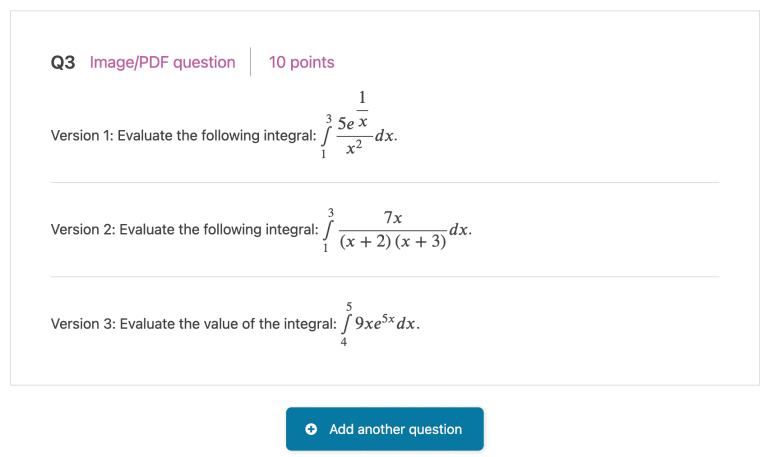 - Enter the content for the next version of your question. You can also click the Copy icon to duplicate the previous version. To continue adding versions, you can click Add another version.