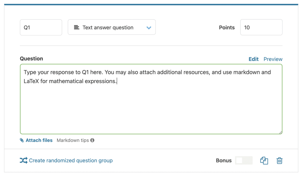 The Question content field supports Markdown, which allows you to change text formatting and to add links and images.