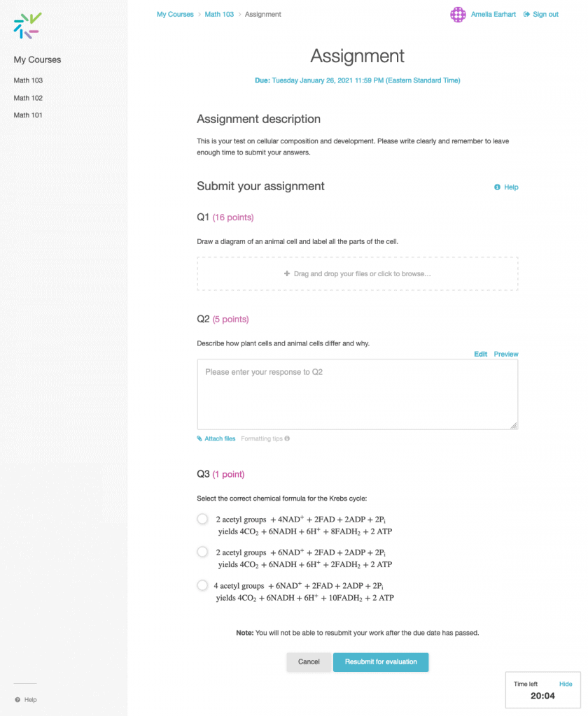 Make sure to follow any instructions that your instructor has written and leave enough extra time before the due date to make sure your work is submitted successfully.