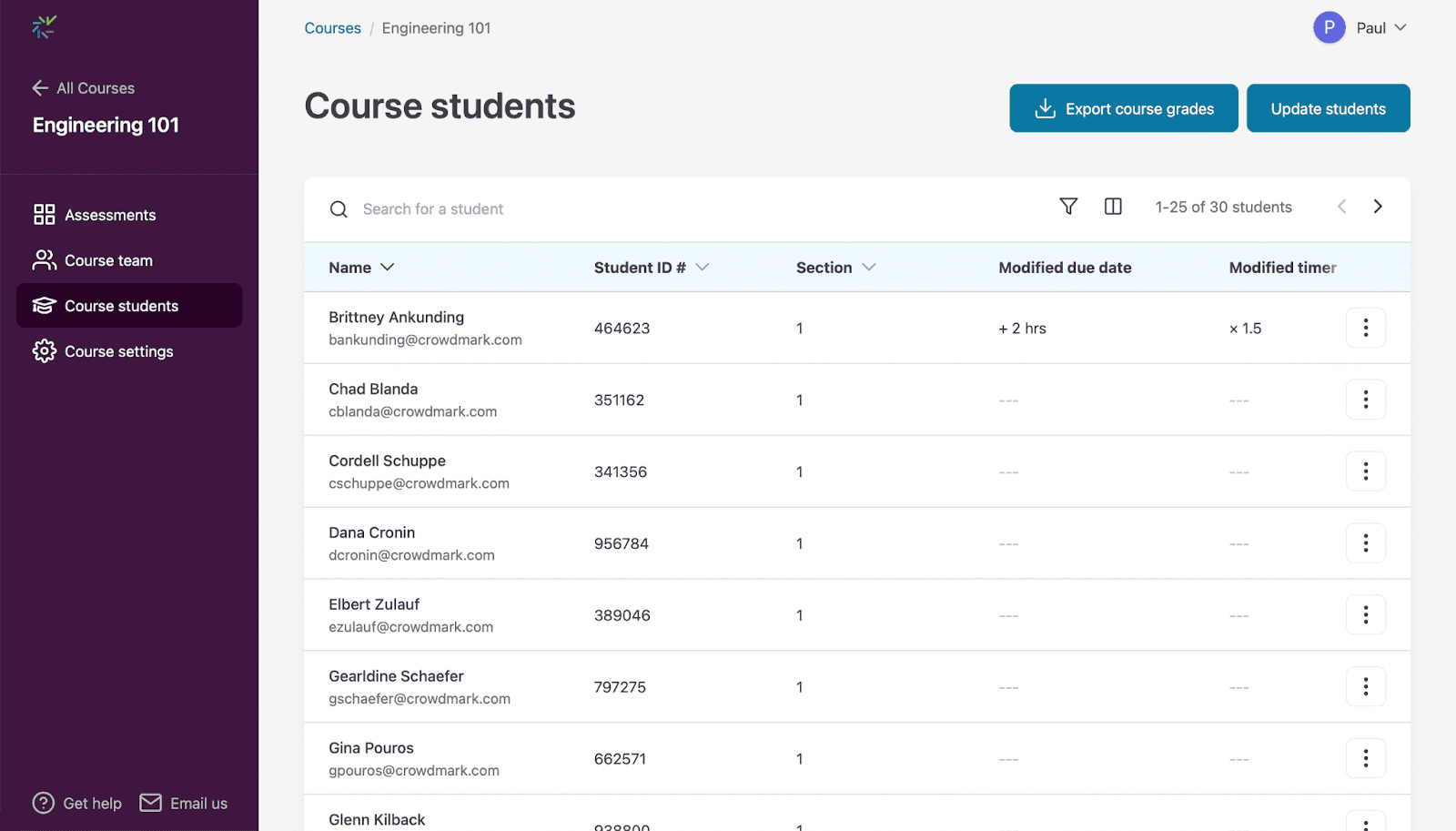 - Navigate to the Course students page.