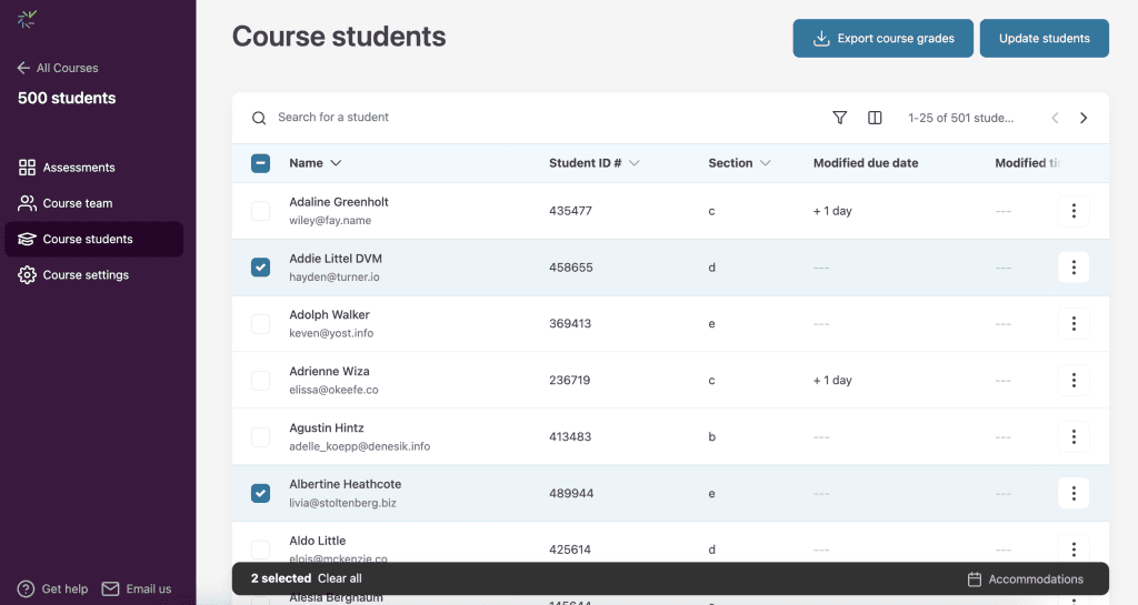 - You can update course accommodations anytime, but changes won’t affect assessments where grades have already been returned.