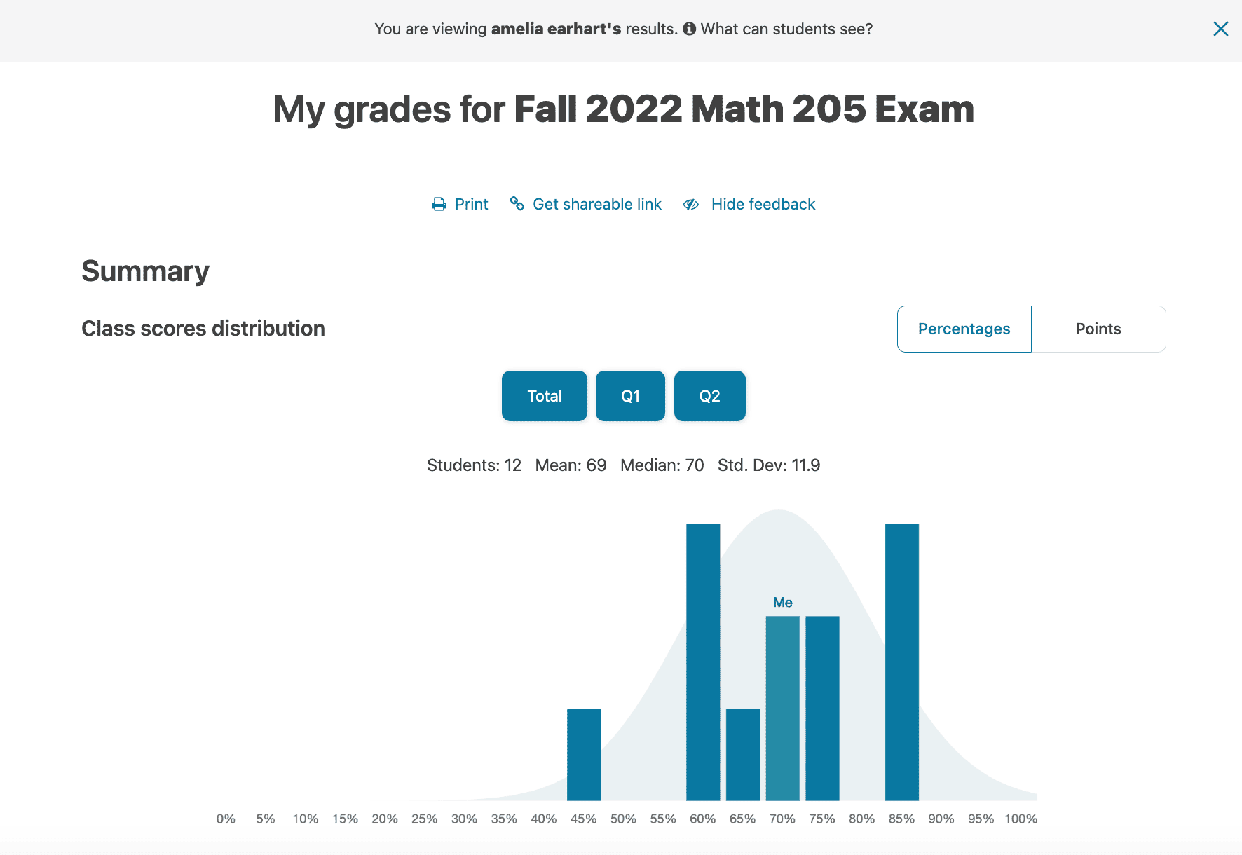 Click the Score link for the student under the three dots menu on the far right. The student’s view of their graded work will appear.