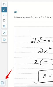 While grading, click the sidebar icon in the lower left corner. This will open a drawer with a thumbnail view of the pages.
