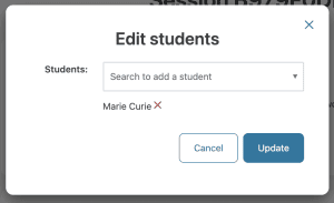 7. Repeat for each student, then click Update to add the students.