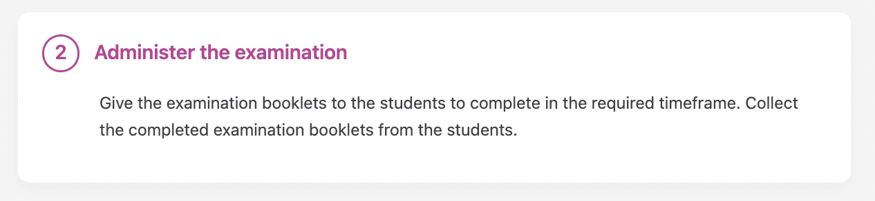 Hand the booklets out to the students. Once the exam is over, collect the completed booklets.