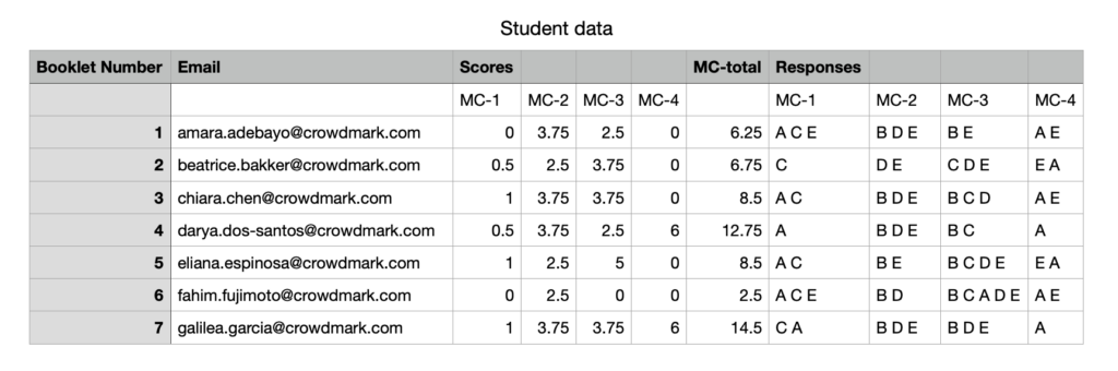 - Total Score: Total score on all multiple choice questions. Total score has a minimum value of 0. If the sum of the scores produces a negative value, Crowdmark will record it as 0.