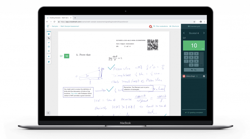 Crowdmark stores all assessments with instructor feedback securely in the cloud. Over time, this creates an easily accessed digital portfolio that can be used for further study, personalization of instruction and detailed evaluation of learning achievement. Teachers can choose to share this portfolio with parents to review their child’s progress throughout the year.